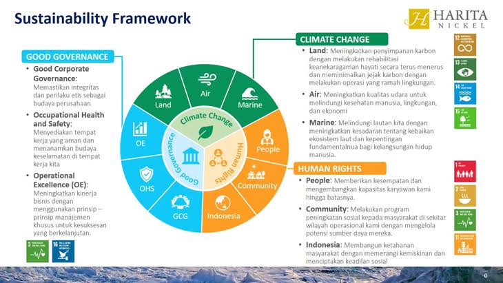 Pada tahun 2020, Pemerintah Indonesia menetapkan Kawasan Industri Pulau Halmahera sebagai Proyek Strategis Nasional, dengan mempertimbangkan kontribusi kawasan tersebut terhadap peningkatan pertumbuhan ekonomi, kesejahteraan masyarakat, dan pembangunan daerah di Indonesia. Industri-industri yang berada dalam kawasan industri tersebut akan juga berkontribusi terhadap kebijakan keberlanjutan yang ambisius dari Pemerintah Indonesia dalam rangka mengatasi perubahan iklim dengan mendorong pemanfaatan energi terbarukan dan perluasan penggunaan kendaraan listrik (EV), baik pada skala domestik maupun internasional. Dampak dari kebijakan-kebijakan pemerintah ini, bersama dengan pertumbuhan yang pesat dalam permintaan pasar untuk baterai EV akan sangat dirasakan di Pulau Halmahera. Oleh karena itu, sangatlah penting untuk menempatkan keberlanjutan di pusat dari strategi perusahaan kami.